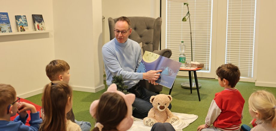 Die Kinder zwischen vier und sechs Jahren erlebten mit dem Bürgermeister, wie Bär Bruno und seine tierischen Freunde Weihnachten erleben und sich gegenseitig in schwierigen Situationen helfen. Beim gemeinsamen Suchen und Finden von versteckten Tieren und dem Ideenaustausch, welche Lösungen für die Abenteuer in dem Buch zu finden sind, bot das Treffen im schönen Leseraum der Kita auch Gelegenheit über Adventskalender, Wichtel und die Weihnachtszeit zu sprechen.