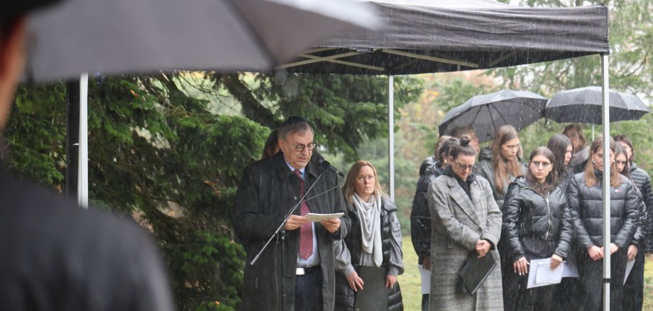 „Erinnerung ist keine Selbstverständlichkeit. Sie lebt nicht einfach fort – sie muss weitergegeben werden. Sie braucht Orte, sie braucht Worte, und sie braucht Menschen, die bereit sind hinzusehen, zuzuhören und sich unserer Vergangenheit zu stellen,“ betonte Bürgermeister Theo Mettenborg die Bedeutung der Gedenkveranstaltung.