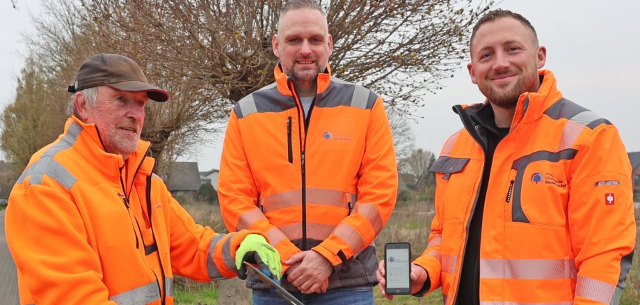 Bild: Jürgen Grießbach, Bauhofleiter Benjamin Stipp und Vorarbeiter Andrej Isaak freuen sich, dass mit den gechipten Abfallbehältern eine bessere Planung der Entleerungen möglich wird.