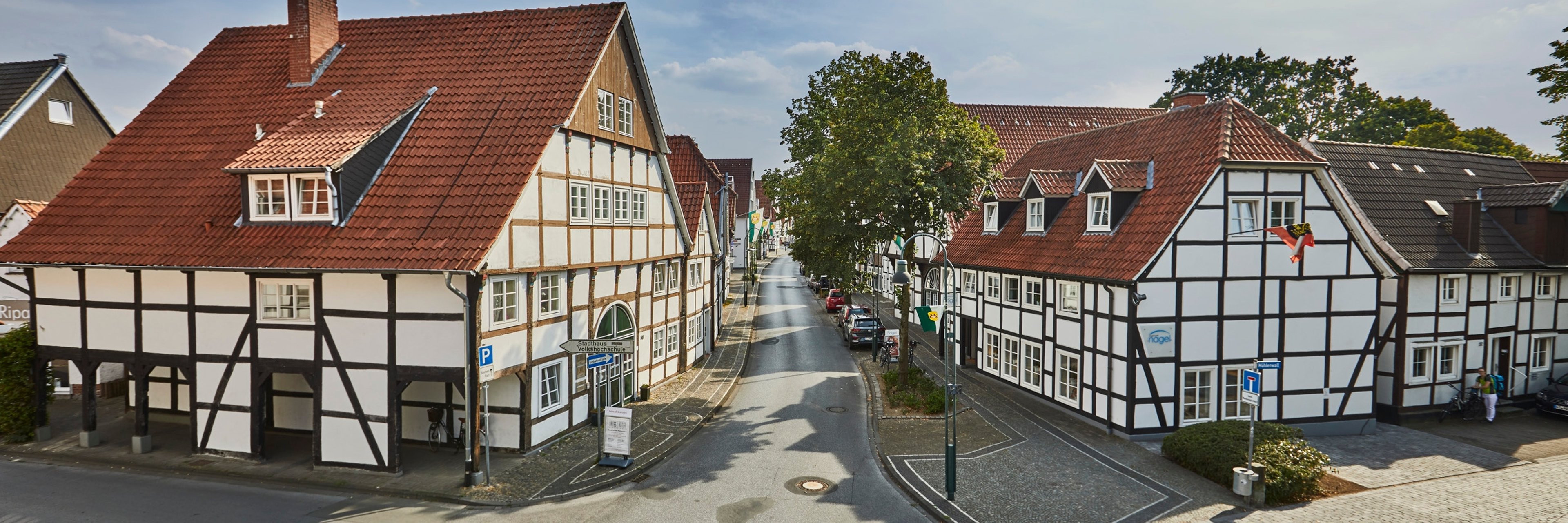 Schöner shoppen: Fachwerkidylle und der abwechslungsreiche Einzelhandel mit seinen oft inhabergeführten Geschäften gehen in Rheda-Wiedenbrück eine bezaubernde Verbindung ein.