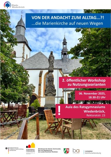 Am 10. Juli 2025 haben über 100 Menschen in der Marienkirche an neuen Nutzungsideen gearbeitet. Drei Arbeitsgruppen haben den Fokus auf die Themen Kinder und Jugendliche, Handel und Gewerbe sowie auf das Thema Gemeinschaft gerichtet. Herzlichen Dank an alle Beteiligten, die die vielen lauten oder auch leiseren Töne mit viel Engagement eingebracht haben. Die Vorschläge, Gedanken und Diskussionsbeiträge des Workshops wurden nun zusammengefasst. Sie finden diese Dokumentation auf der Homepage der Stadt Rheda-Wiedenbrück. https://www.rheda-wiedenbrueck.de/umwelt-bauen-verkehr/stadtentwicklung/isek-wiedenbrueck/marienkirche/