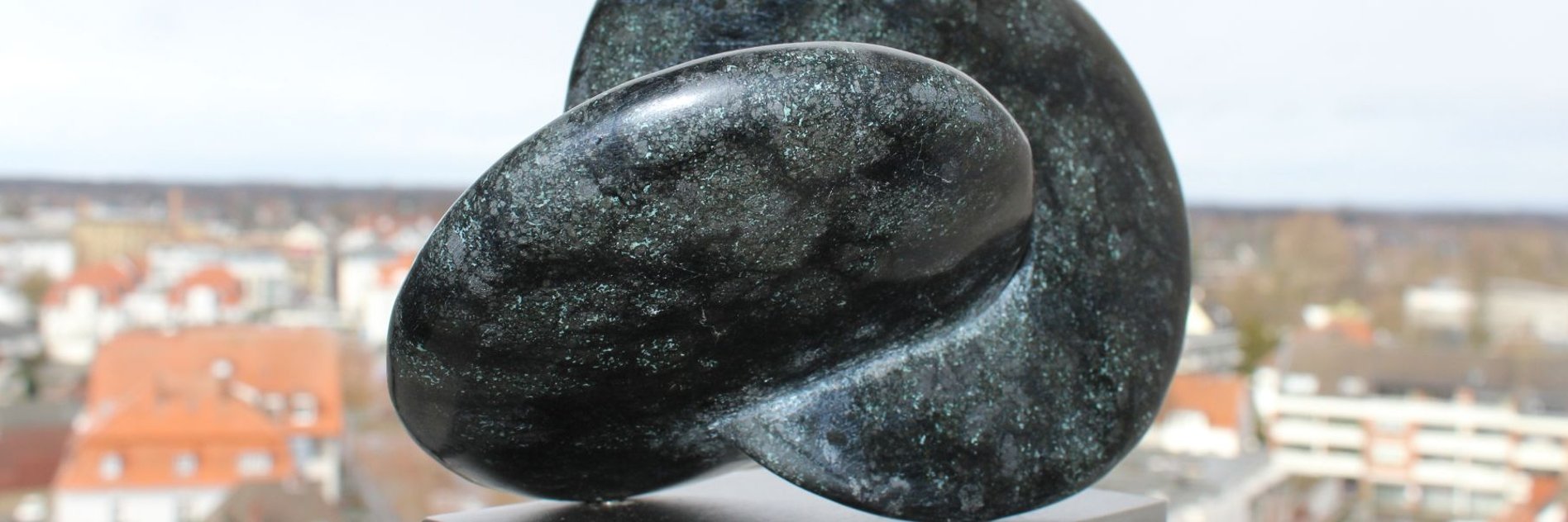 Aus dem schwarzen Diabas, ein hartes sub-vulkanisches Gestein, schlägt der Künstler Bernd Bergkemper aus Langenberg die Skulptur. Sie ist zum Wahrzeichen für herausragende unternehmerische Leistung in Rheda-Wiedenbrück geworden. Jährlich wird ein Unternehmen mit dem Wirtschaftspreis der Stadt Rheda-Wiedenbrück ausgezeichnet.